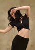 Erstaunliches Top mit gedrehter Vorderseite, lang genug, um Ihnen ein sicheres Gefühl zu geben und Ihre Unterwäsche zu schließen, aber kurz und schön, um etwas von Ihrem Körper zu zeigen.