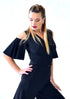 Enjoy dancing in this fantastic wrap top with cold shoulders and butterfly sleeves. Jet black color makes this piece very elegant and versatile.