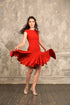 A fantastic black salsa dress for practice or dance party. Princess seams, low waist, ruffles forming a skirt , moving with your evry step.