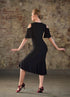 Highlight your moves in this unique feminine dress which features cold shoulders and elegant ruffled sleeves , a dipped frill hem skirt forms a beautiful trail in the back . This dress is for a sophisticated dancer who wants to impress  on the dancefloor. Match it with your favorite tango shoes and you are ready.